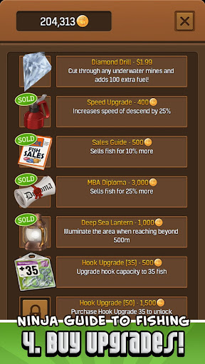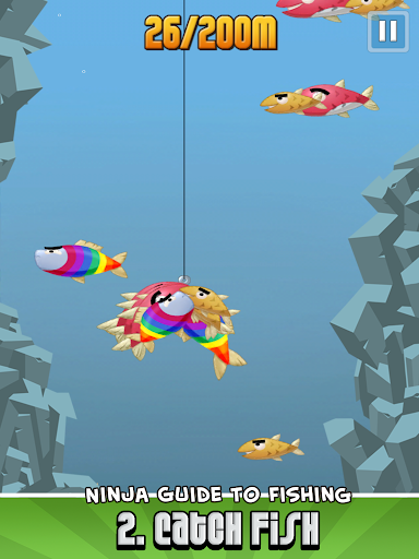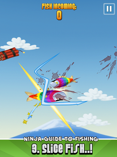 Cast your hook as deep as possible into the ocean, then use the tilt controls to reel back as many fish as you can. Finally, use the katana-powered touch technology to slice the scaly fish right out of the sky for maximum gold profit (watch out for the Dynamites).