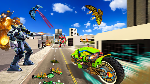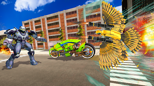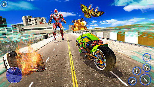 The Pigeon Flying Robot Game is especially designed for you guys to have an unlimited fun Robot Shooting Games and Bike Transforming Games. Get into the war with the criminal’s bots and fly as pigeon robo with super destructive powers by using smooth flying controls and take down the enemy helicopters and flying bots. The Pigeon Robot mission in which you must utilize your futuristic warfare experience, stealth mission spy skills to evade the enemies in pigeon games. Enjoy the dazzling modes of the Pigeon Robot Bike Transform 3D of robo bike games where a pigeon fights against enemies.