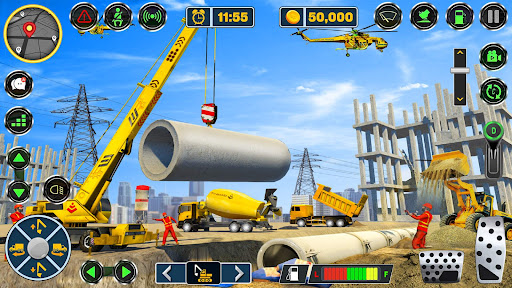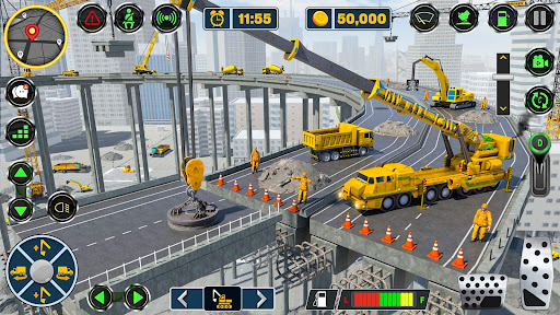After the Bridge and Tower construction games, the City Construction Simulator Excavator Crane Games assigns you a project of highway road construction 2021 games. Well don’t you worry, road building construction games are not as simple games like sand excavator games in which users will operate heavy construction machinery, you have to obey all civil engineering laws to build a city road in City Construction Simulator Excavator Crane Games.
