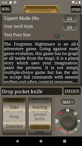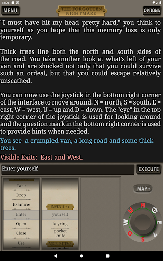 A modern text adventure game with a Christian theme that is designed to allow the player full control and not simply multiple choice. It has a modern interface with a map that draws automatically as you explore. Commands are easily entered without typing using a modern interface and it is filled with comedic responses. Enter a silly command? Get a silly answer!