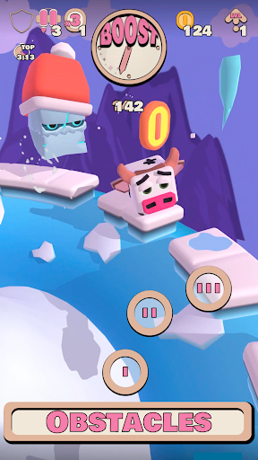 Here, in order to survive, the main character will have to go through many deadly obstacles and literally jump away on blocks platforms from the monsters that want to crush them.