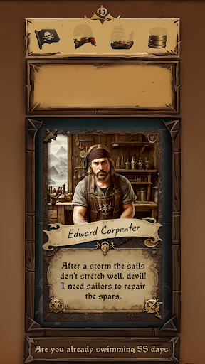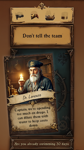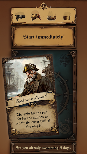 This pirate card game will let you assemble your team and become a legend at sea. You will play as the captain of a pirate ship and make decisions with just a swipe of your finger. The decisions made will be unquestioningly carried out by your subordinates and will affect resources. The most important stats you’ll have to keep a close eye on are renown, team spirit, ship condition, and gold.