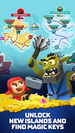 Dark Dungeons, evil enemies, and other unique troops are waiting for you! Plan a unique battle strategy, fight an idle war and defeat bosses. Unlock all the islands, from Green Goblins to Venomous Vampires, and locate the 6 magic keys.