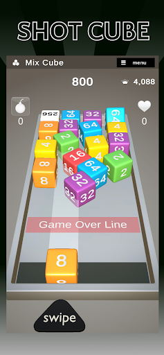 You can get bombs for cubes numbered 1024, 2048, and 4096. Using the bomb, you can score multiple cubes at once.