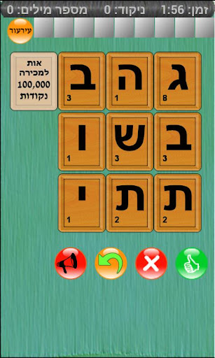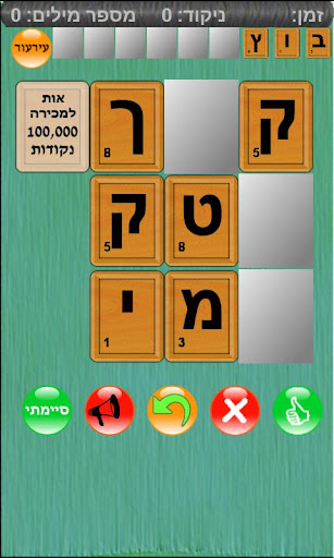 לאחר הרכבת מילה יש ללחוץ על כפתור “בדוק”. אם המילה נכונה תקבלו ניקוד בהתאם לערכם של האותויות שבהן השתמשתם,