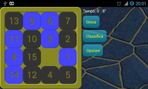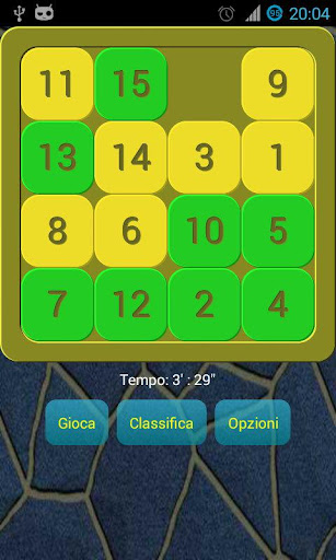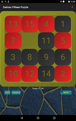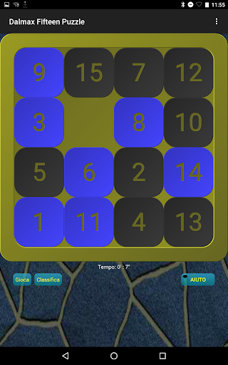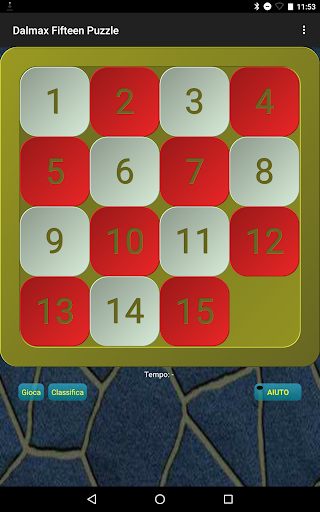The classic 15-puzzle game (also called Gem Puzzle, Boss Puzzle, Game of Fifteen, Mystic Square and many others) is a sliding puzzle that consists of a frame of numbered square tiles in random order with one tile missing.