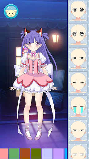 This app let you freely create cartoon girl image of variety of styles. you can choose your favorite eyes, eyebrow, skin color, hair style to create your lovely model. In addition, there are a great variety of accessories, shirts,blouses,skirts,gowns,overcoat to choose from. Start to design your lovely animated girl image with your unlimited imagination.