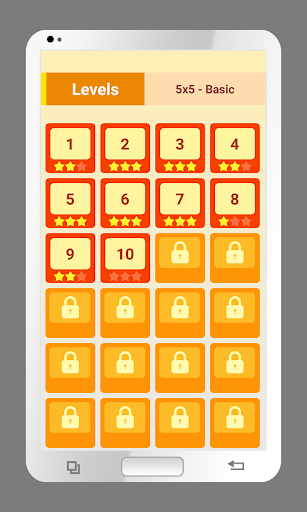 Play hundreds of levels with more hardness as you play more levels. There is 3 packs with approximately 500 different levels starting with 5X5 levels and ending with 14X14 for tablets and large screens.