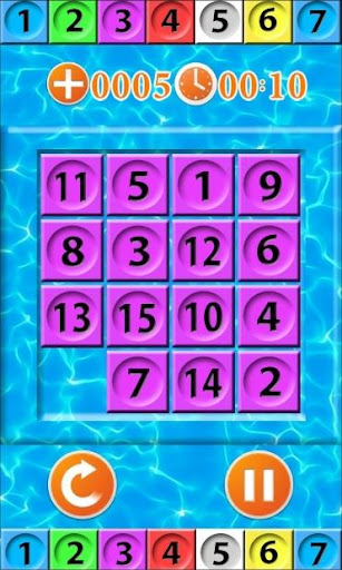 Fifteen – a puzzle that is 15 square knuckles with numbers from 1 to 15. All knuckles are enclosed in a 4×4 square (the side of the square is four times longer than the knuckles a19748c8e9). Thus, when you place the knuckles in the square, there is one empty space about the size of one knuckle that can be used to move the knuckles. The goal of the game is to arrange the placement of numbers by placing them in ascending order from left to right and top to bottom, starting with the knuckles with the number 1 in the upper left corner and ending with the empty space in the lower right corner. You can choose the background of the game and the color of the knuckles. You can share your game result through social networks, email, etc. Play with your friends, relatives, co-workers, acquaintances, etc. Mix the knuckles in places and ask others to assemble them. Good luck !!!