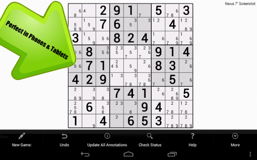 This Sudoku will look and feel like playing a real sudoku on paper but we still offer the cool features you would expect on a phone game; unlimited puzzles, undo, help on annotations, multiple skins, timer, statistics, save and back to checkpoints, solve game, check game correction… this game may look simple at first look but we are convinced it is the most complete one in its category.