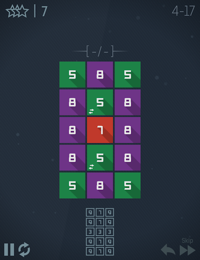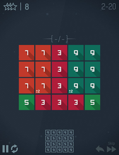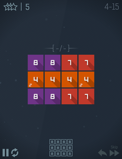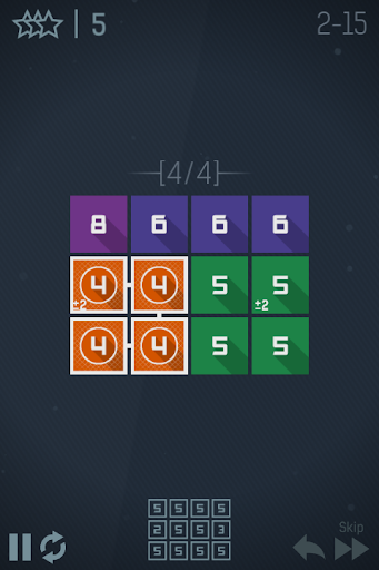 Select adjacent cells with the same number and scroll them left and right to change their values. Complete levels by creating the target pattern. Finish in as few moves as possible to get all of the stars. You will find over 50 levels.