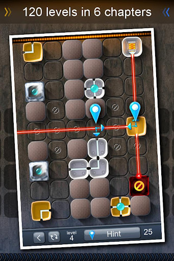 Move elements, activate the lazer receiver, get crystals, reach new chapters and levels!