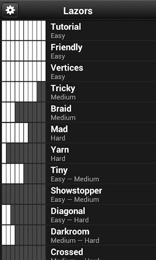 Lazors is a puzzle game of lasers and mirrors offering more than a hundred levels, ranging from easy distractions to hard challenges.