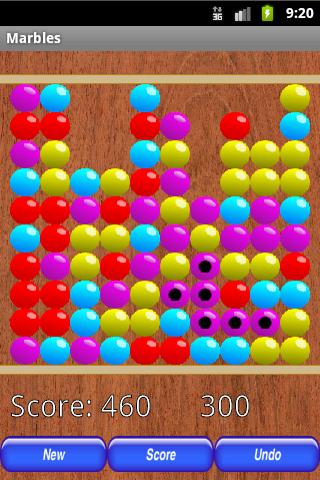 The object of the game is to collect marble sets. The larger the marble set collected, the larger the score. A marble set is a group of identical marbles connected to each other left-and-right, or up-and-down.