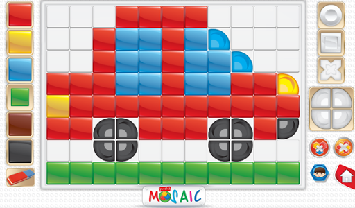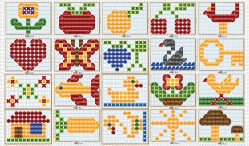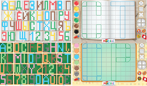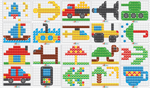 Mosaic puzzles for children – one of the most interesting and at the same time the most simple toys. Mosaic (puzzles) for children is a set of chips of different colors and plate. Children’s mosaic in the child develops a great sense of style and harmony and creates an aesthetic sense. Also playing with small chips helps develop fine motor finger, care and diligence. Mosaic (puzzles) for children – it is useful to develop a toy, and not just a way to take something to the child. Pixel mosaic by numbers (puzzles) consists of a platform on which the layout of cells by 11 gorezontali, 8 cells vertically. In contrast to the static game infinite number of chips in seven colors: red, yellow, blue, green, brown, black, and an eraser to remove the erroneously set of chips. There is also a gallery of pictures of tips that have been collected on the number of 100 pieces: tomato, cats, dogs, orange, cherry and so on, all you can come up with a fantasy child. With help of Mosaic (puzzles), you can train a child writing numbers, the application contains drawings hints from 1 to 10. Functionality to immediately remove all of the chips, turn off the picture clue and the child is free to add any of the images themselves. Each screen has its own style of game design and can replace chips form round, square and cross. Each color has its own note, which sounds when you click on a chip. In the Lite version is 15 tips