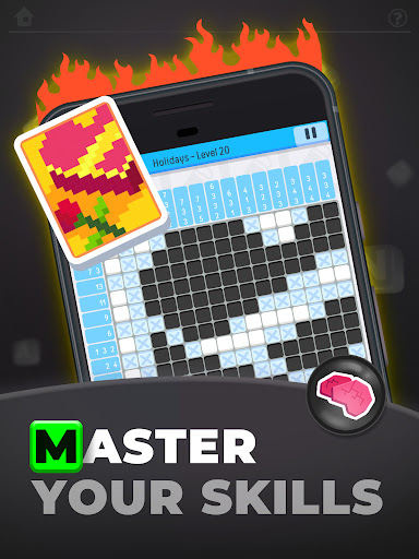 Sharpen your mind anywhere, anytime with easy to learn, hard to master nonogram puzzles (a.k.a. Picross, Griddler, Picture Cross), all while discovering awesome pixel art illustrations. These puzzles are more than just fun, they are a true enigma that will put your mind to the test and make you a little bit smarter each day you play.