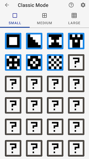 kind of nonogramm : 5×5, 10×10, 15×15, 20×20, 25×25