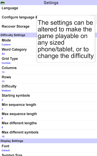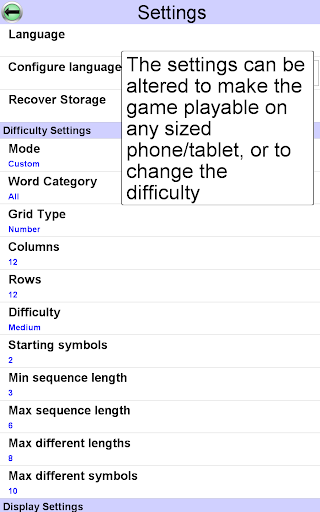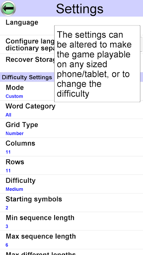 • Multiple difficulty options. Play one of 10 built in difficulty levels, or use the custom mode to configure the difficulty of the game to exactly what you want