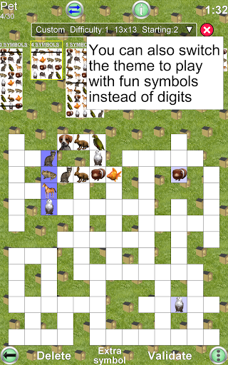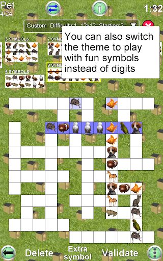 Fit numbers or images into the grid of the game. A fun puzzle game with easy rules. It means you can start playing immediately. Use your skill to find the correct place for each sequence of numbers or pictures.