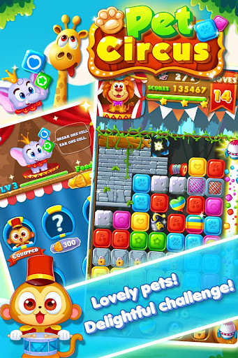 Pet Circus,a brand new puzzle game from Ezjoy will surely bring you a delightful journey unlike anything you have played before!5 more pets, worldwide maps and hero challenge brings you a fresh new experience.Tap on two or more same color blocks, collect food to feed pets and lead your circus!You’re the leader of the circus, come and take on your friends in this joyful free phone game!