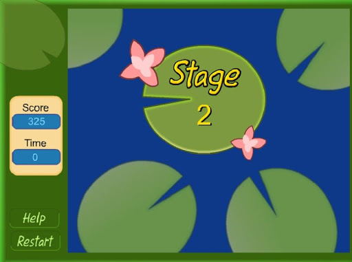 The objective of the game is to eat out all the dragonflies in the screen. When the game starts, you will see a number of frogs and a number of dragonflies on the lotus. You can click on the frogs to make them shoot out their tongues and catch the dragonflies. If a frog’s tongue hits another frog, that frog will shoot out its tongue and then turn around. If a frog gets hit in the face it will just turn around. Try to string as many frogs together to catch a dragon fly and get a combo bonus. You will start out with sixty seconds to complete each level. And you will get less and less time as you make progress. Swallow all the dragonflies to move on to the next level. Have fun.