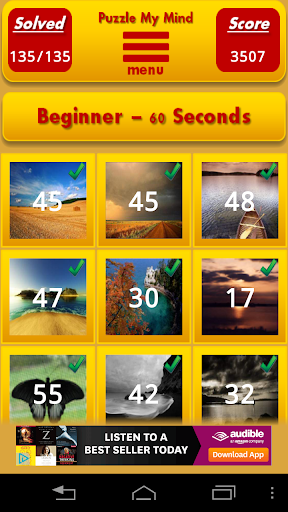 A great Mind Game to help you practice your visual analysis skills while having fun. Puzzle My Mind is a visual puzzle game where you use puzzle pieces to recreate a sample image using the puzzle pieces. The game contains 135 images of beautiful nature scenes and wildlife that are used for the puzzles. Compete against others on a global top scoreboard. Complete each puzzle as many times as you wish to get a higher score.