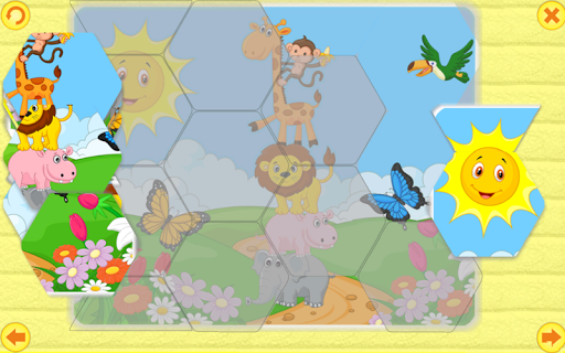 Once assembled mosaic, colorful picture appears when you click on different areas which play a sound to match the theme of the picture.
