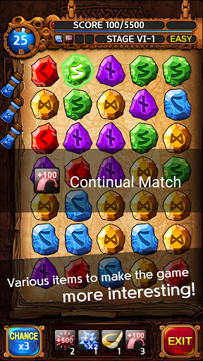 Your mission is to match the same color Rune Stone for 4 or more in a line to advance to the next level before the Spirit runs out.