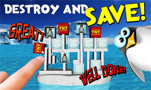 These small aquatic birds need your help to get out of this dangerous situation. Save the penguins by blowing up the ice cubes and white planks that separate them from the TNT boxes, in order to make the explosive boxes fall into the water.