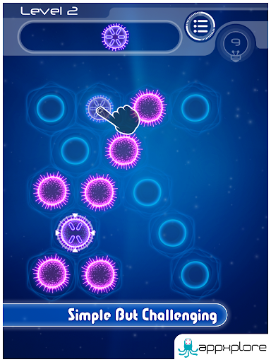 Sporos is a simple yet challenging puzzle game. The objective is to light up the cells in each level with a special seed known as the sporos. Players drag pieces onto the board one at a time, arranging them to extend all the way down every row and column. Sporos demands a mix of skill, luck, and logic; in order to succeed, players will conduct clever experiments like scientists in a lab. The soothing electronic music helps you keep your cool, while the colorful graphics lend the game a spacey, biological vibe. Sporos starts off easy, but with hundreds of levels and multiple solutions for each, it will take a true puzzle genius to master this stylish, colorful app.