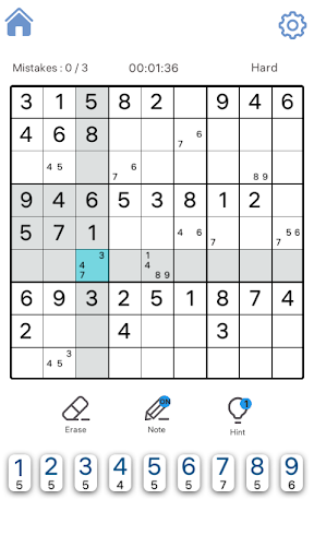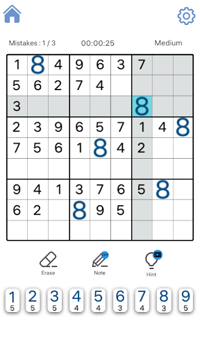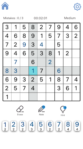 Classic Sudoku is a logic-based number puzzle game and the goal is to place 1 to 9 digit numbers into each grid cell so that each number can only appear once in each row, each column and each mini-grid.