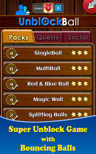 Single Ball, Multi Ball, Red & Blue Ball, Magic Wall, Splitting Ball & Super Block game packs.