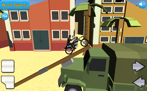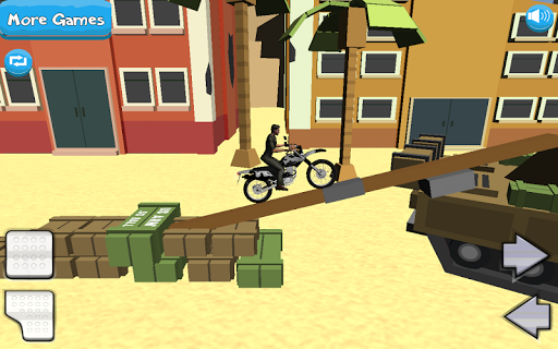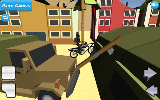 Can you make you make it to the end of each level? Doing stunts and epic tricks while you fly through the air? Jump into huge loops and see if you can battle gravity to stay up. Can you make over wire fences, tanks and piles of rubble? Your crosses skills will need to be second to none to do so.