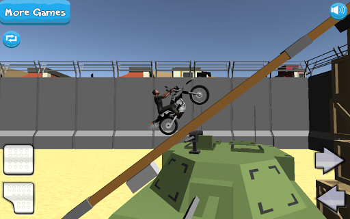 Are you ready to put your trial bike through it’s paces, in this action packed military madness edition of Bike Tricks? Set in an epic war zone, the soldiers have got bored and decided to arrange the vehicles and spare parts of the base into an assault course for dirt bikes! you’re the first to try.