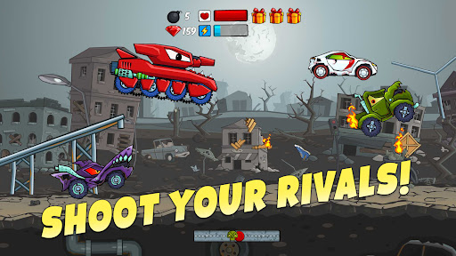 Experience the adrenaline of high-speed hills and the unique landscapes of Drowned City, Misty Forest, Ghost Town, and the magic Swamp! Drive to the finish line on various tracks full of obstacles, climbs, jumps, and dizzying turns. 2D cartoon graphics with colorful visual design, smooth animation, funny traffic accidents, and challenging offroad missions – you’ll play this game for hours! Car Eats Car is an addictive racing game that is difficult to put away!