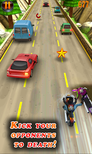 Ride your trusty moto, face rivals in the streets of the city zipping between vehicles at reckless speed and kick your opponents until they fall to the ground!