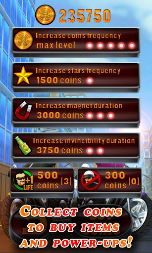 – Collect coins to buy several items and power-ups in a well assorted virtual store!