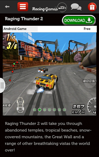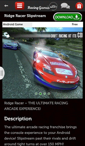Most popular and new released racing games are available in this miscellany. Our editors expert in games have distinguished the high quality games from stuff games of the Android Market™ to create an alternative way. YOU CANNOT PLAY THE GAMES ON THE GAME LIST. With ‘install’ button, you will be directed to the android market if you have internet connection.