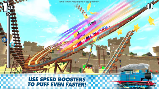 Join Thomas and his friends on exciting racing adventures! Race as your favorite engine on incredible tracks filled with twisty rollercoasters, splashy waterslides and epic jumps! Play against rival engines or challenge a friend in the 2-player mode! Use speed boosters to help you race your fastest and collect golden cogwheels to upgrade your engines. Full steam ahead!