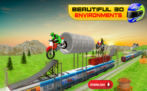 In Crazy bike stunts you have to drive carefully to become a perfect motorcycle stunt master. In extreme moto 3d, we provide endless customization and mind-blowing physics. The Background of our bike stunt racing is provided with an overall colorful landscape. The Updated environment represents real-life mega ramp tracks in our games without internet. The sports motorcycle is displayed in our storyline for extra stimulation. Bring some adventure to your life with a real bike stunt games framework of multiple challenges. This stunt motorbike game is perfectly originated for impossible mega ramps. This stunt bike game is for those who love ultra-realistic graphics. Avoid obstacles and start your journey of stunt motorcycle game.