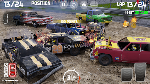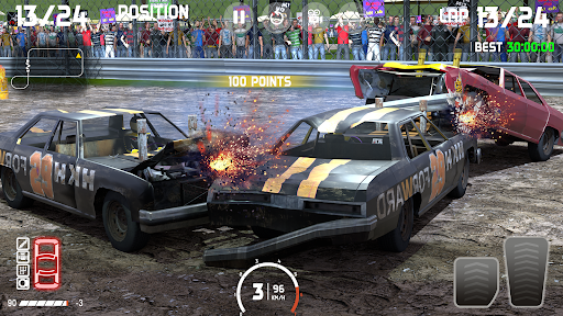 : Fire and smashing particle effects of crashing cars and addictive sounds derby games.