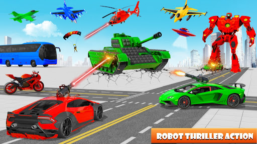 Enemy battle with battle simulator game, car bat robot transformation fight with the most dangerous evil robot wars. In this robot Games, car robot simulation game have to take the control In Hole city against the evil robot forces and Alien forces. Car robot does not bend before the Enemies shooting and killing Public car robot transforming powers and become a super fighter battle simulator game in this City. If you are looking dinosaur shooting game or robot shooting game.