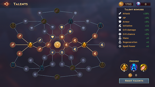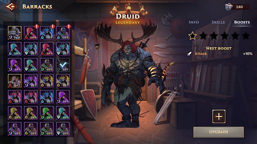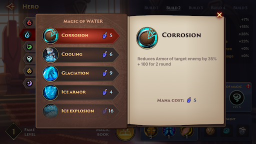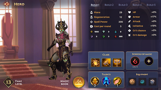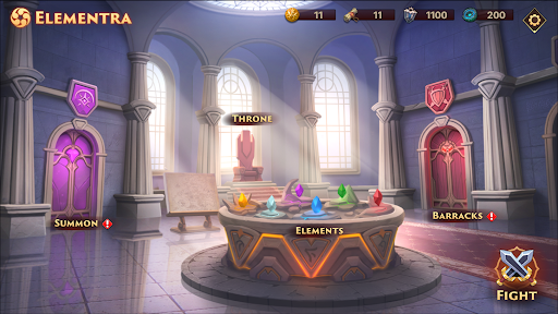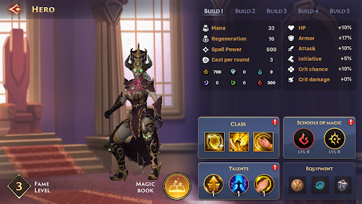 Enter the throne room to upgrade your hero, learn powerful spells to triumph in battle. Play as a Pyromancer or Paladin, upgrade talents to improve your strength. Excel in water, fire, light, dark, wind, and nature schools of magic to defeat your enemies!