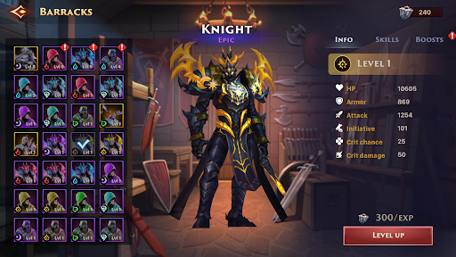 Summon vigorous fighters and boost their skills, experiment with different teams to clear dungeons, combine and embrace the power of the elements to win. Choose your strategy wisely as you lead your squad into battle!