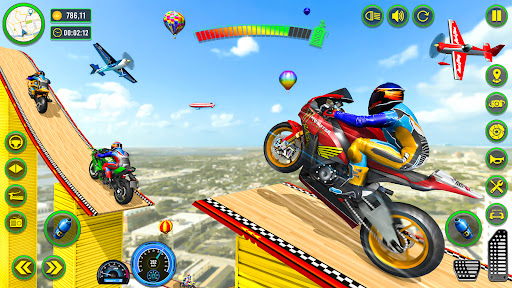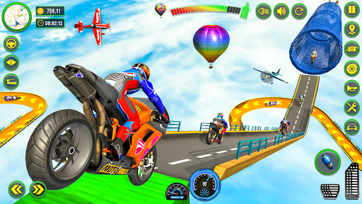 – Multiple bikes collection, sports moto and formulators used in GT Mega Ramp stunt: motorcycle Game