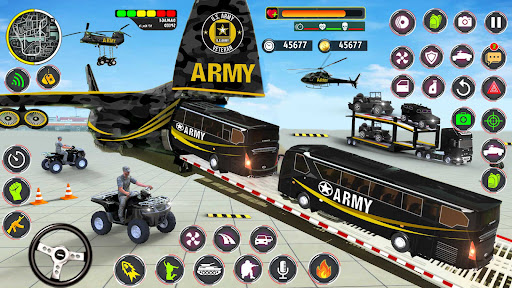 OffRoad US Army Transport Simulator 2021 gives you this amazing chance of becoming a pro offroad transport hero of US army transport games by driving and transporting army cargo and vehicles on uneven rugged offroad terrain. Enjoy deadly hill offroad duty and transport cargo, jeeps, and vehicles undamaged to the army heroes base. It’s high time to check your driving and transporting skills. Transport cargo and deliver them safely within the given time allotted. So fasten your seat belt for a real challenge and become the real transport legend hero of 2021. As a flying airplane pilot take goods, cargo, and jeeps on helicopter US ARMY Vehicle Transport. Have a birds eye view of an offroad hill station while flying a helicopter high in the sky.