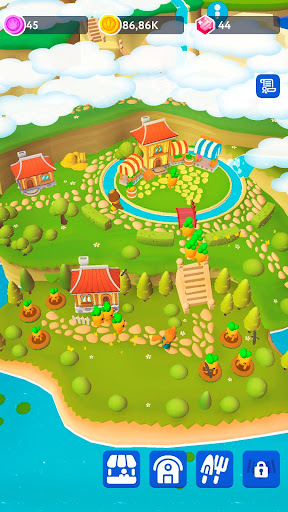 You’ll get an island to plant trees and veggies. To proceed in the game, you’d need to upgrade the veggies, complete the tasks, level up and collect the money. All those steps will give you a possibility to unlock more and more islands gradually empowering your business. Oh, and let’s not forget our Benjamin, he’ll be your guide in this magic cute veggie world.