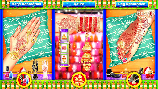 In this offline game, start with engagement, chat between couple, design kale like punjabi wedding salon, hand and leg henna mehendi designs and jewellery like bangles, anklets, rings, etc. Be a makeover expert and perform various tasks, like hair spa, face spa, makeover & makeup asmr, asmr skincare, asmr makeover, hair salon, and spa salon activities. Prepare the Dulhan or Indian bride character for the royal wedding, Muslim wedding, hijab wedding.
