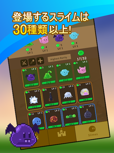 There are 32 types of slime! Each slime has its own skill. Let’s clear the stage with your slime party!