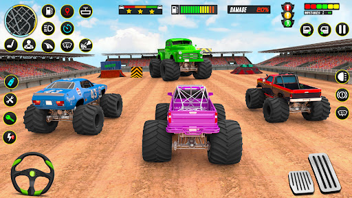Survive the extreme derby demolition battle of Police Monster Truck Derby Simulator by driving speedy monster truck stunts games and surpass showing off your racing skills on the zig-zag ramps in the Police Monster Truck Derby Demolition Games. Drive monster derby truck stunts games on impossible tracks and enjoy crashing and destroying your rivals in the stunt racing games powered with proper speed and acceleration in this car stunt 3d truck demolition derby. Register yourself in the hottest racing game of the season; Offroad Monster Truck Driving simulator truck demolition derby. This valorous racing game has wonderful graphics, realistic sounds, and addictive gameplay to keep you hooked for a long time on the monster truck games extreme derby games. Take the championship title home in the real monster truck extreme derby crash stunts games.